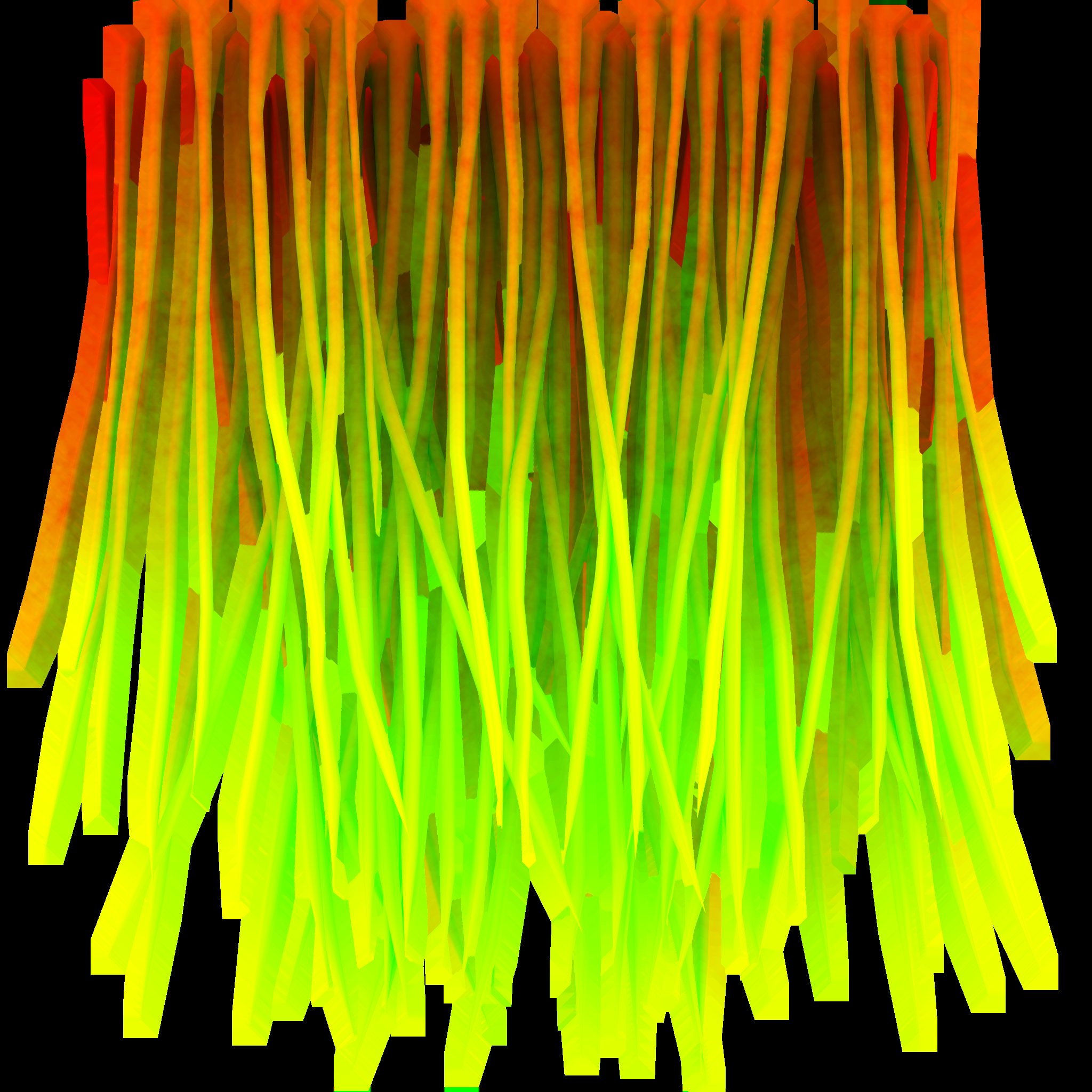 The fur card geometry was made in Zbrush using a FiberMesh workflow. The color of the fur was made by PolyPainting the cards in Zbrush and setting up the Unreal material to multiply the vertex color data with the base color map.